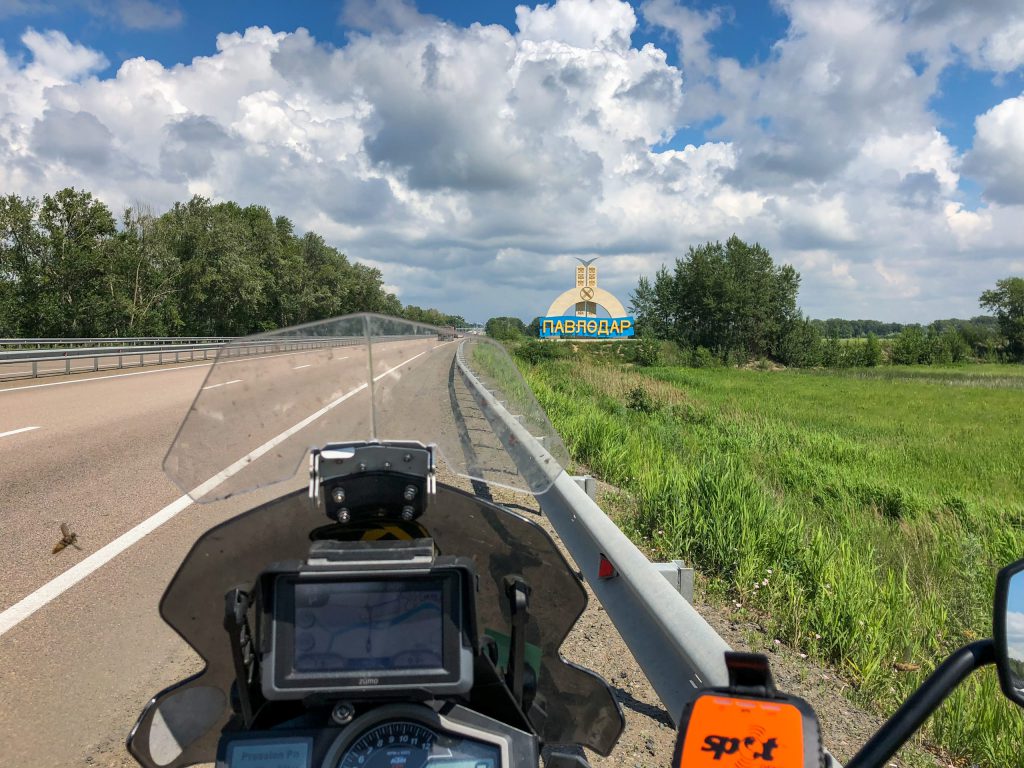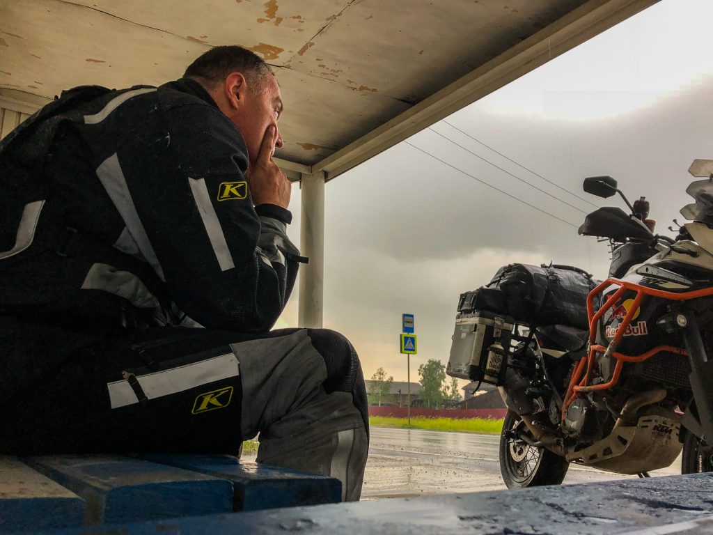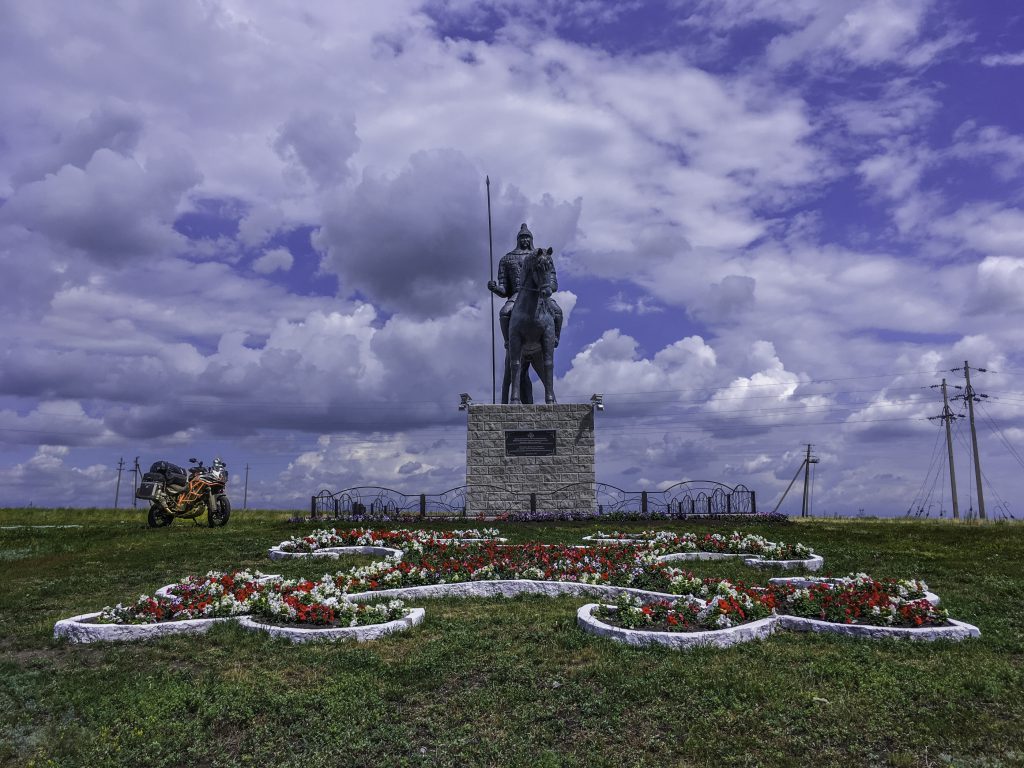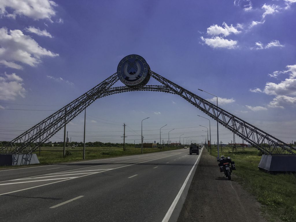 I think I become obsessed by the weather, I can’t stop looking at the sky this morning, and no way of knowing if it will be good or not … then rain suit or not? … Let’s go, and try without, we’ll see. Head full East, still on the M7. It’s funny to watch your GPS showing you: “destination 527km, in 432km turn left” Until the end I would have believed. Even stopping at the entrance of Ufa to make a quick souvenir shot I still believed. Well, he has decided otherwise, the manager of the weather all up there, and he didn’t do it light… never seen so hard rain. It’s stupid, we only had 2 km left. And there you say to yourself, if I hadn’t stopped doing this damn picture!…