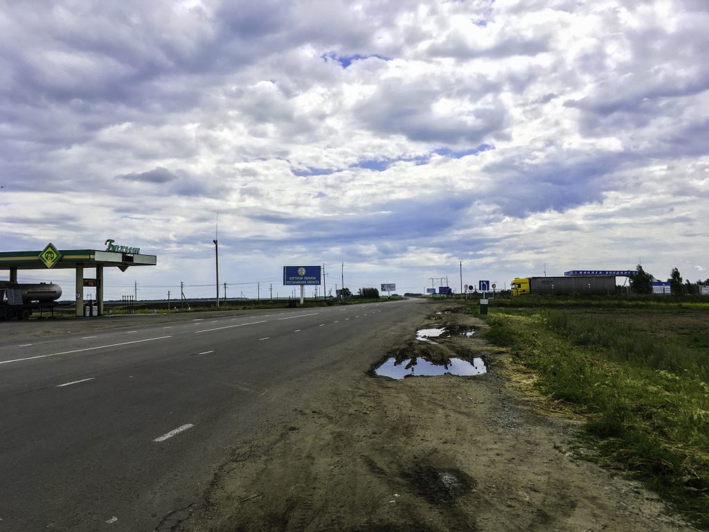 Little bit stressed this morning… we have to pass the Russian-Kazakh border, and absolutely no idea of what could going on. Leaving Chelyabinsk by the M36, which will be our road till the end of the trip ! We arrived at the border, in the middle of the land. First we have to leave the Russian Fédération. I park the bike and enter inside the border building. Control of bike documents, passport, stamps, and voilà. Then we go to the Kazakh part, 200 meters away. I park one more time and enter the building; lot of people there! finally I receive the stamp without any issue, even for the bike. Only two hours, and we are in Kazakhstan. We arrive then at Kostanay, last city before our next stop tomorrow, 720km further.