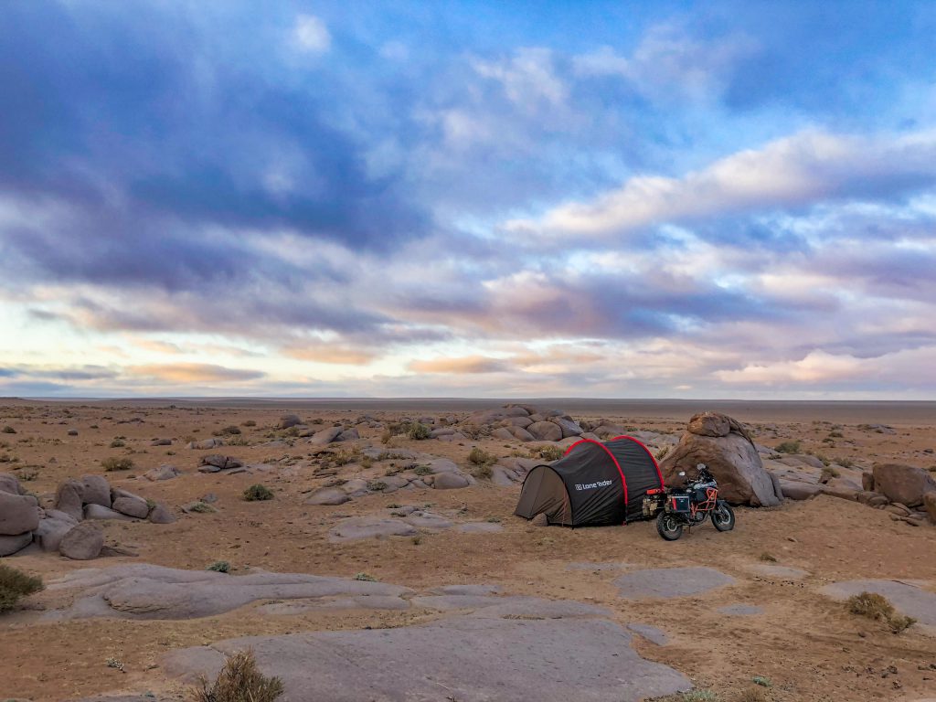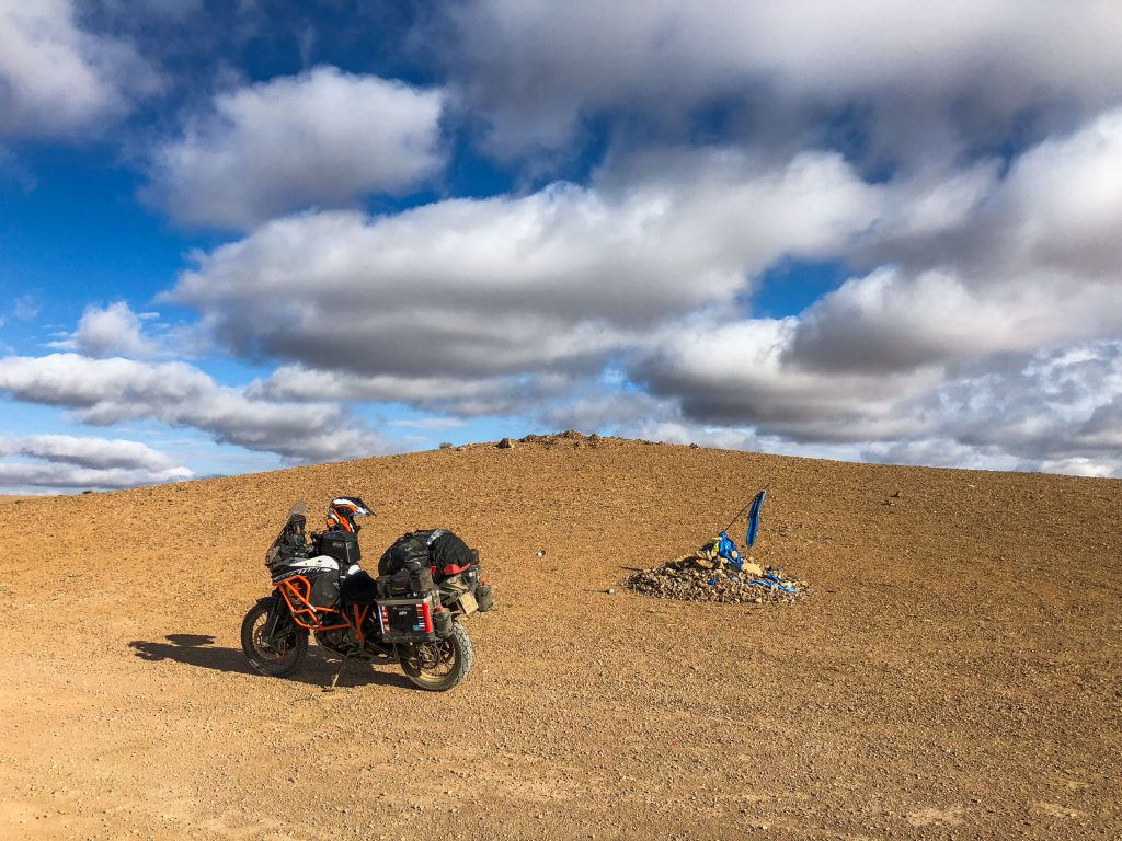 Day #15 – 46°06’52.7″N 98°31’51.0″E – 501km (311mi) After a full day of off road ride, I found a camp spot for the night, and set the tent just before a storm. Fortunately, the morning give us a wonderful landscape to begin the day.