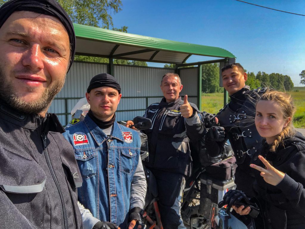 Day #21 – Pavlodar – 594km (369mi) On the way to Pavlodar, I make a stop along the road and a group of riders on their way to the Altai mountains stop to meet me.